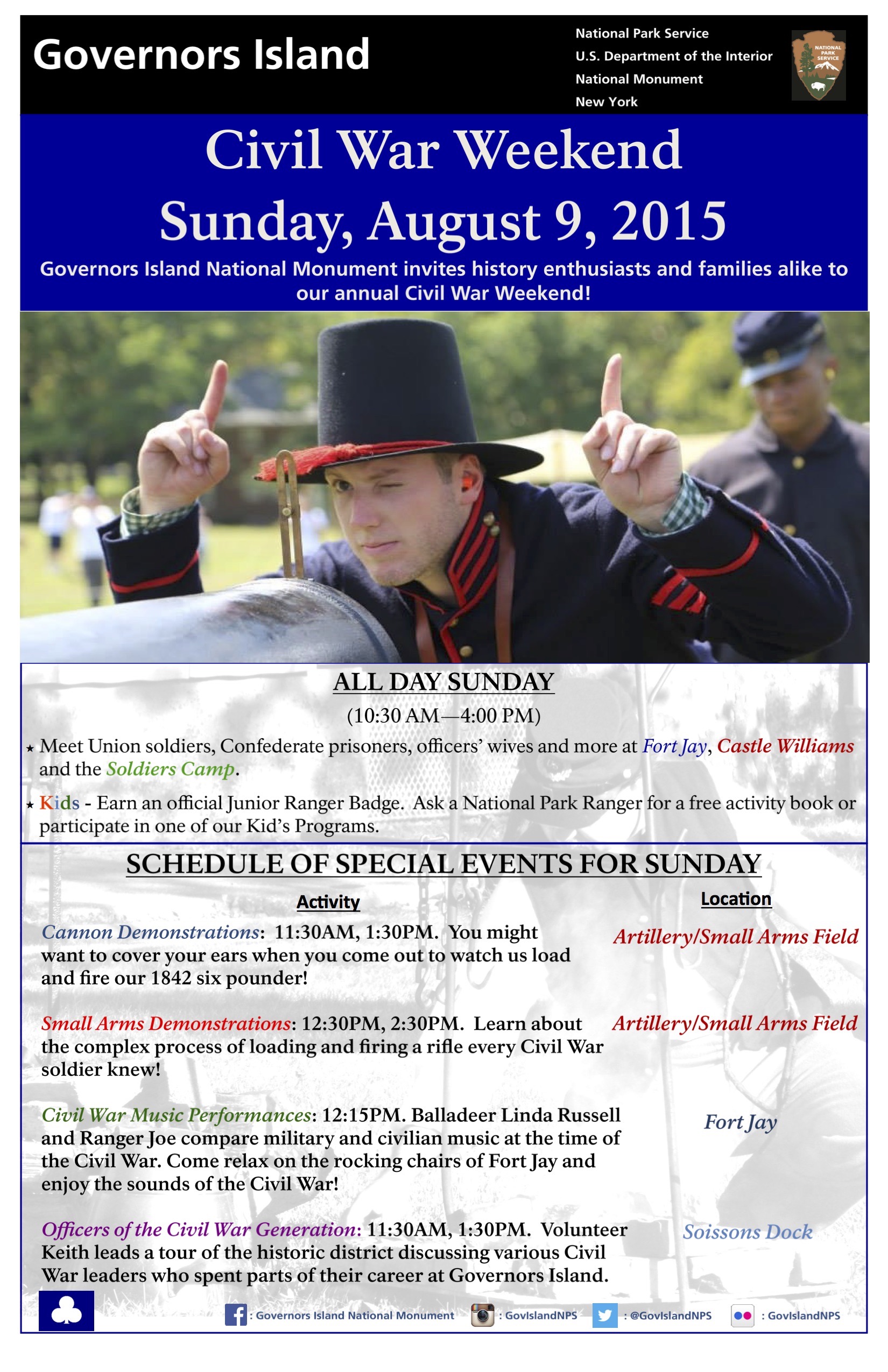 Should you happen to live in New York City or the vicinity, here is something to do Saturday and Sunday: Governors Island’s annual Civil War Weekend is again upon us. There will be a lot to take in and the weather should be great all weekend. You can’t ask for better than blue skies and temperatures in the 80s for August. On Sunday a guy with my initials will even be leading tours starting atop Soinssons Dock and making our way to Nolan Park. We will be talking along the way about some of the many Civil War officers who spent time on the island over their careers. It is going to be a great weekend all the way around.