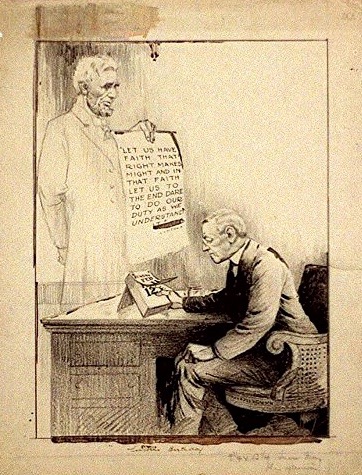 Turning to Lincoln on the brink of war 11 Saturday Feb 2017 Original size at 362 × 475 ≈ Leave a comment Lincoln to Wilson, 12 February 1917: “Let us have faith that right makes might . . .”