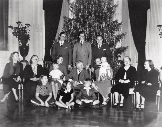 Back Row (L-R): Franklin D. Roosevelt, Jr.; John Roosevelt; John Boettiger Middle Row (L-R): Eleanor Roosevelt; Sara D. Roosevelt; Franklin D. Roosevelt, III; Ethel du Pont Roosevelt; President Franklin D. Roosevelt; Anna Roosevelt Boettiger; John Roosevelt Boettiger; Elizabeth Riley Roosevelt; Anne Lindsay Clark Roosevelt Front Row (L-R): “Sistie” (Anna Eleanor Dall), Diana Hopkins, “Buzzie” (Curtis Roosevelt Dall)